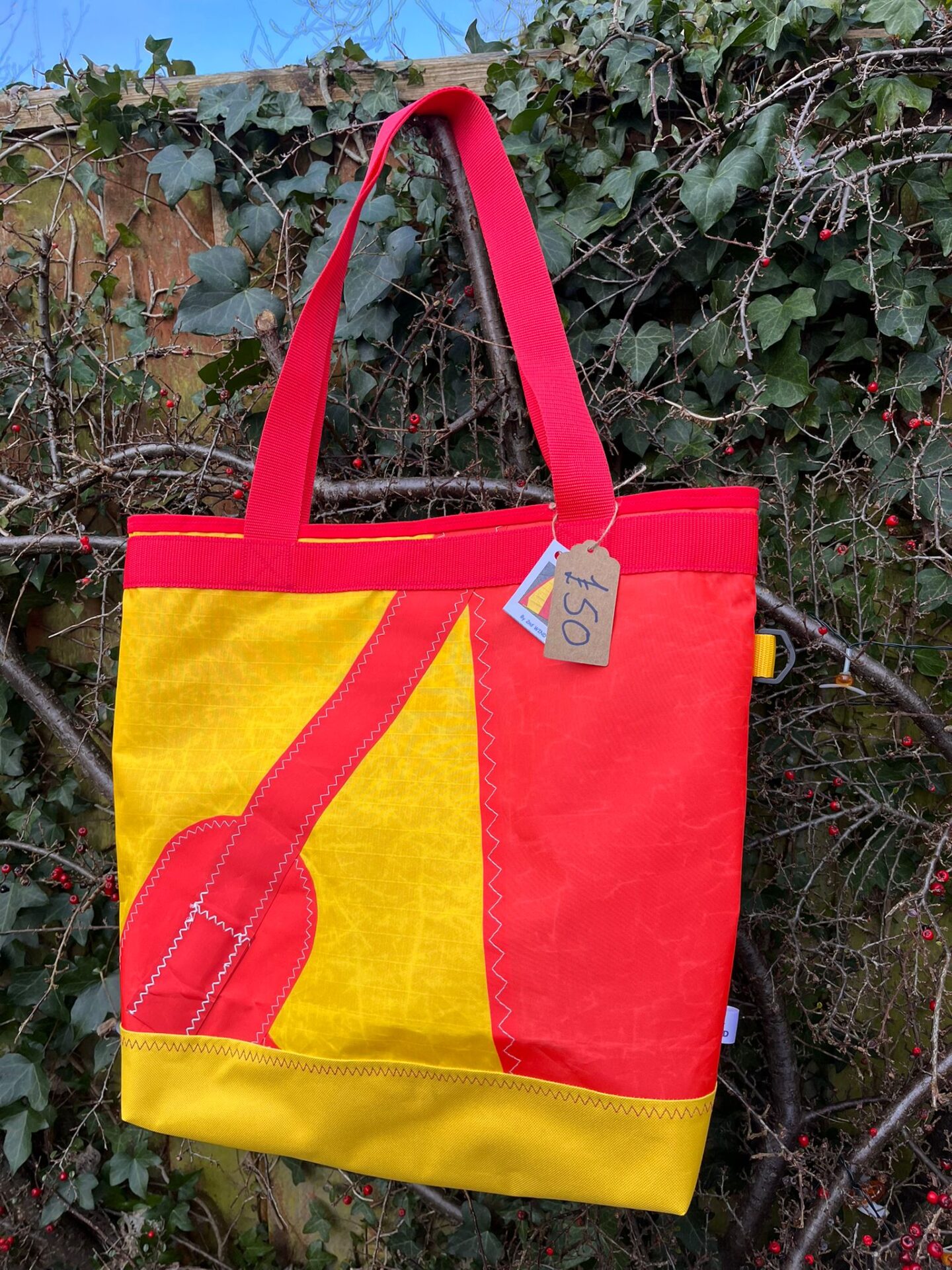 Unless a new sail has been used, all sails have been washed and ironed before being transformed into a bag. Please bear in mind that this material has in many cases had a previous life on the water so some discoloration, staining and imperfections could be present but great care has been taken to minimize this.