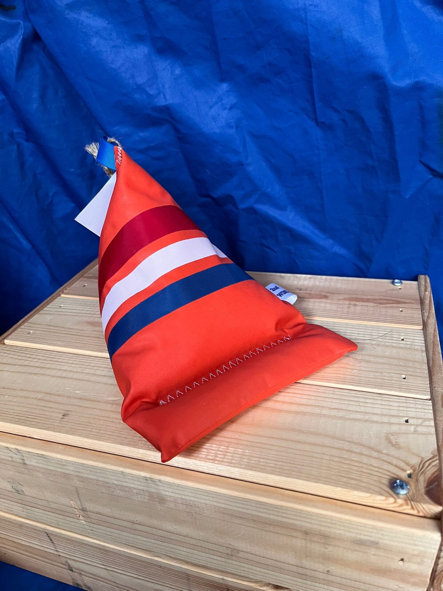 These handy little products have been designed to hold a mobile phone or kindle. They are made from either upcycled yacht, windsurf or dinghy sail. They measure 13cm high, 14cm wide. In some designs genuine yacht insignia tape has been used. Internally, the pillows house little sewn bags containing 400g of new, kiln dried sand and polyester filling completes the product.